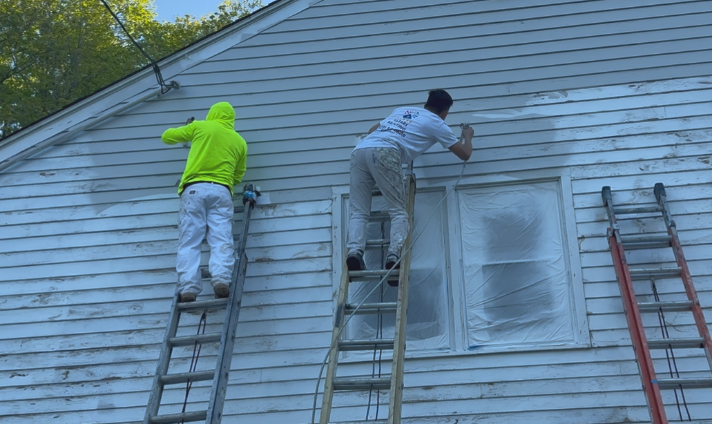 Our process for painting an exterior which includes power washing, caulking, wood replacement, scraping and sanding loose or chipped paint, and masking off all surfaces not being painted.